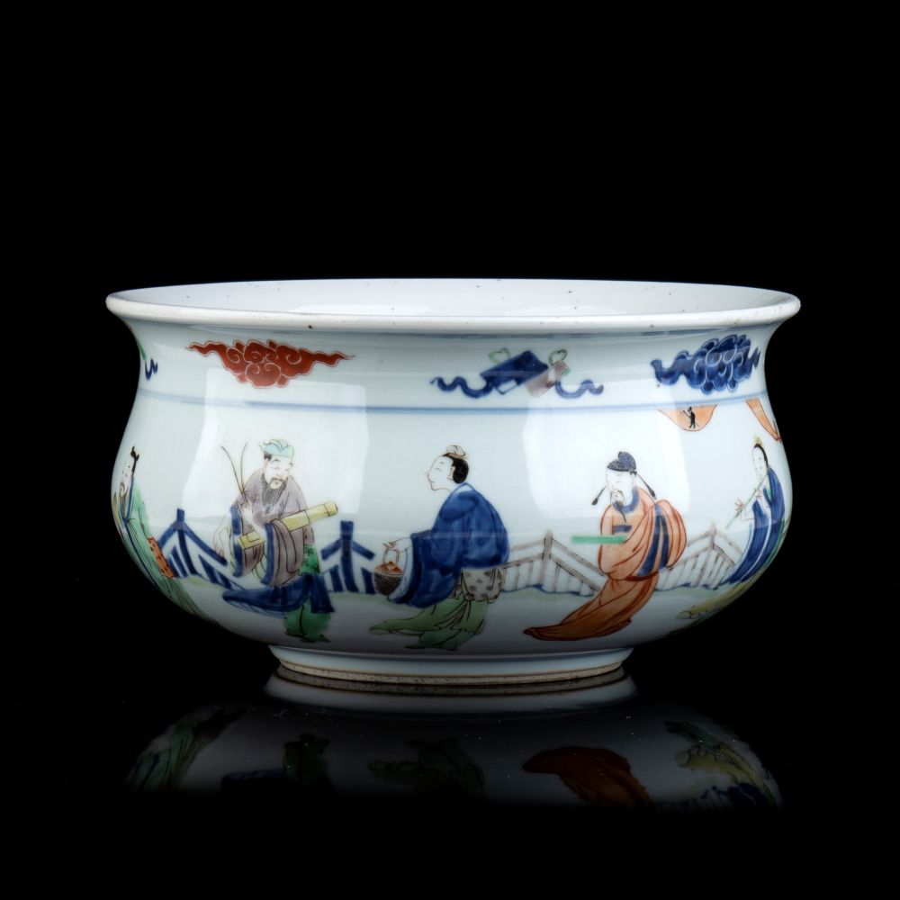 BACILE IN PORCELLANA CON DECORO A SMALTI POLICROMI