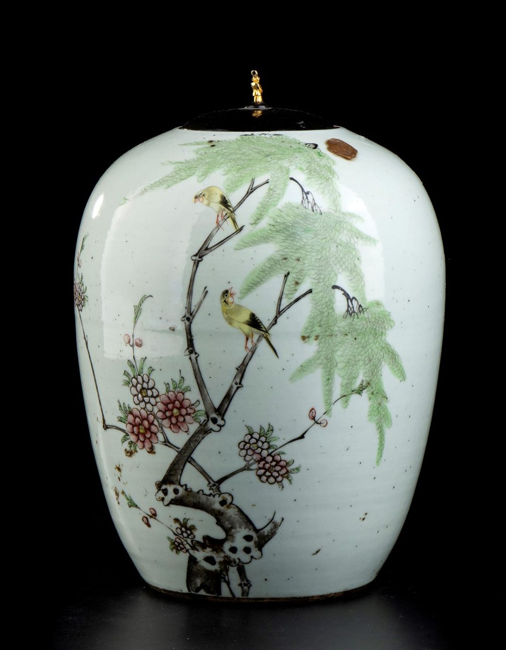 GIARA IN PORCELLANA CON DECORO A SMALTI POLICROMI