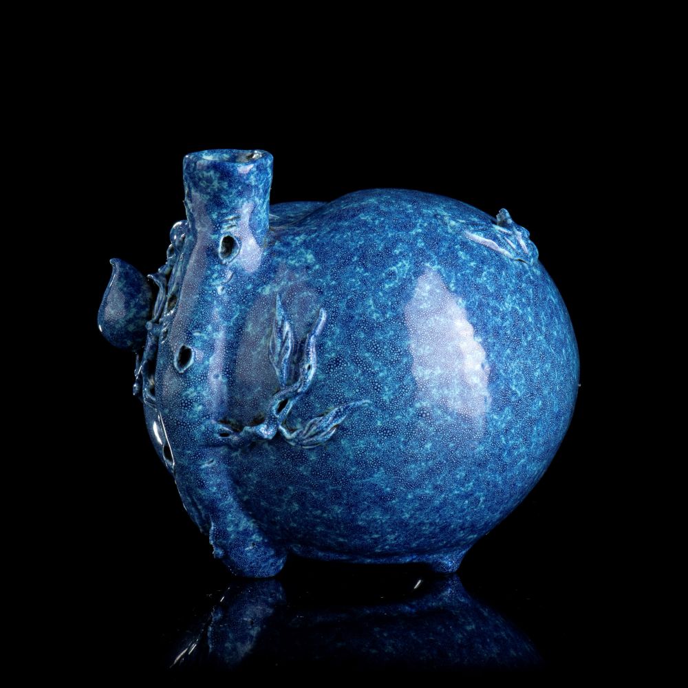 VERSATOIO A FORMA DI PESCA IN PORCELLANA CON INVETRIATURA ROBIN'S EGG