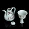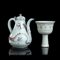 VERSATOIO CON COPERCHIO E COPPA A STELO IN PORCELLANA CON DECORO IN ROSSO DI RAME