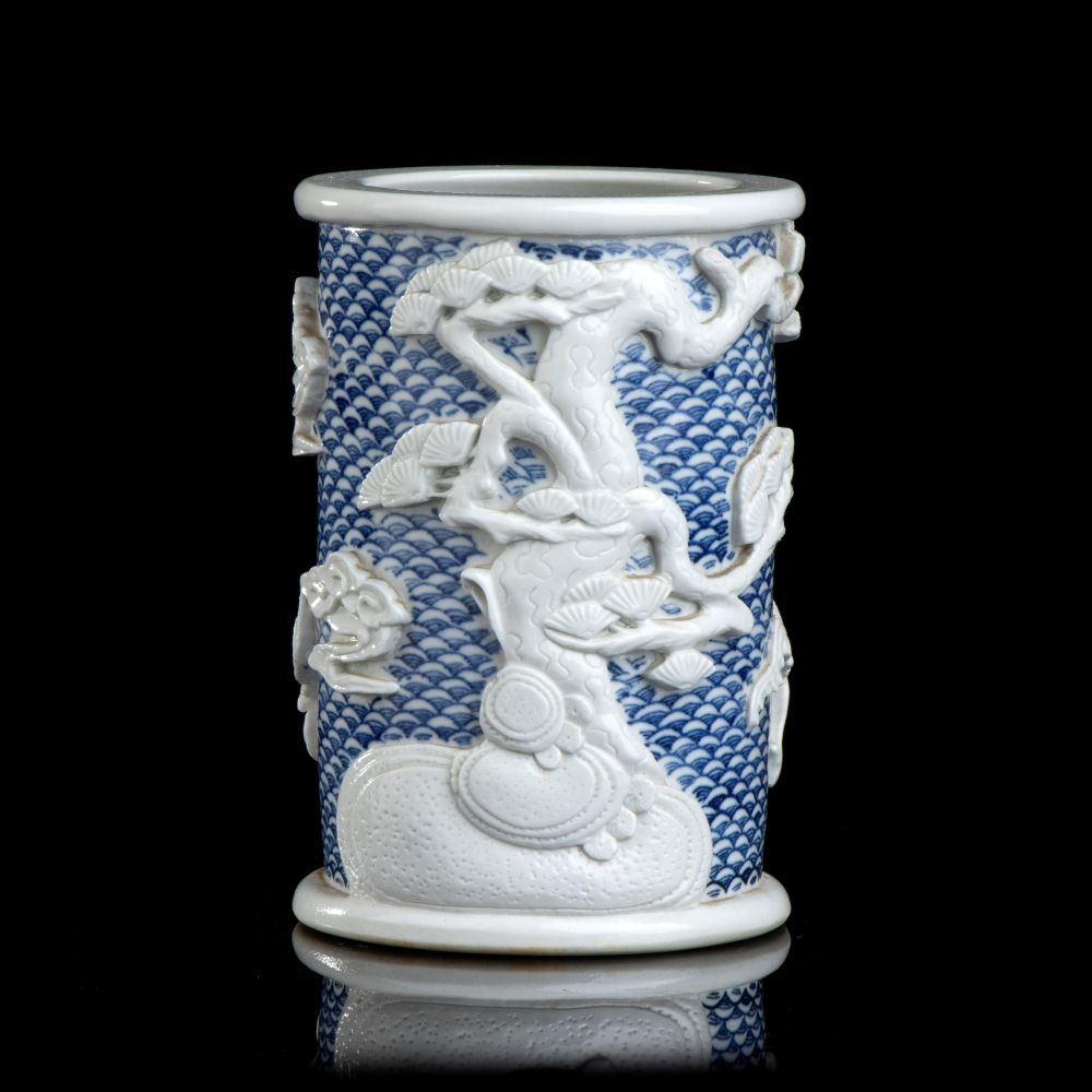 Lotto 194 | PORTAPENNELLI IN PORCELLANA 'BIANCO E BLU' XX secolo 15 x 10