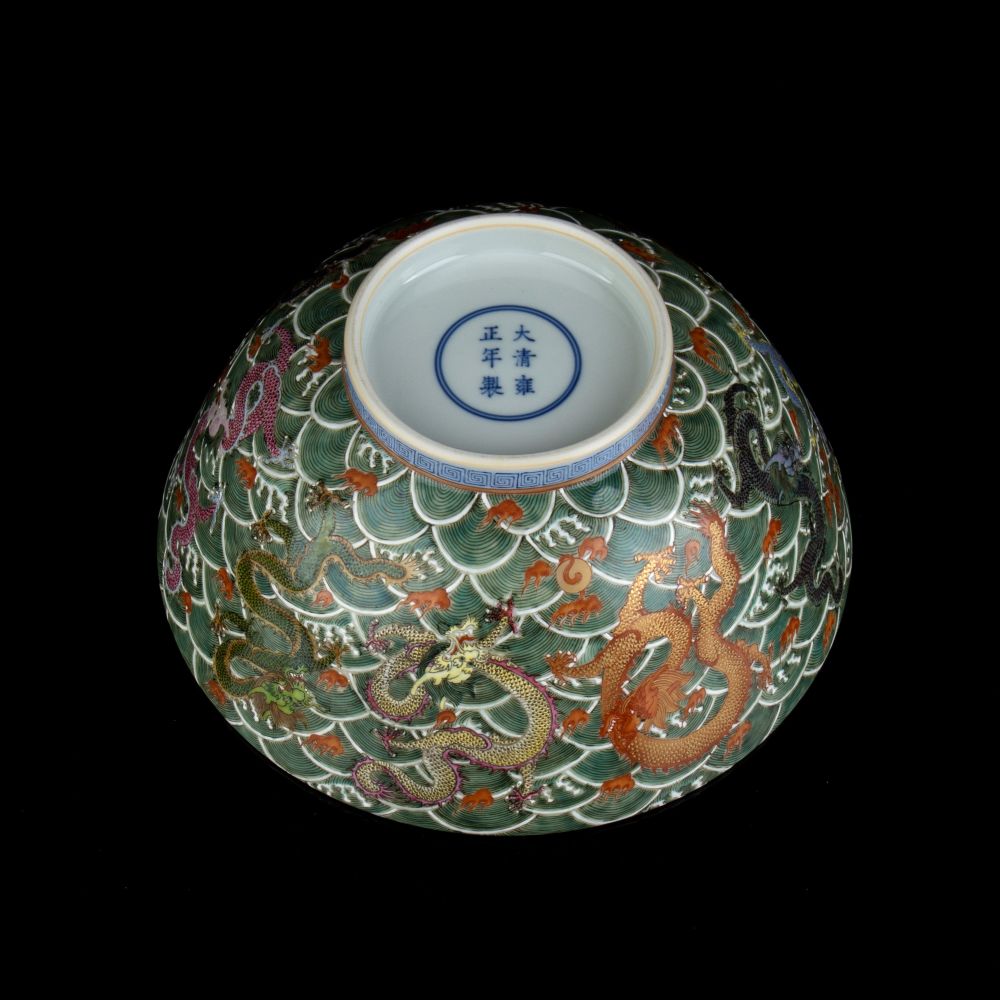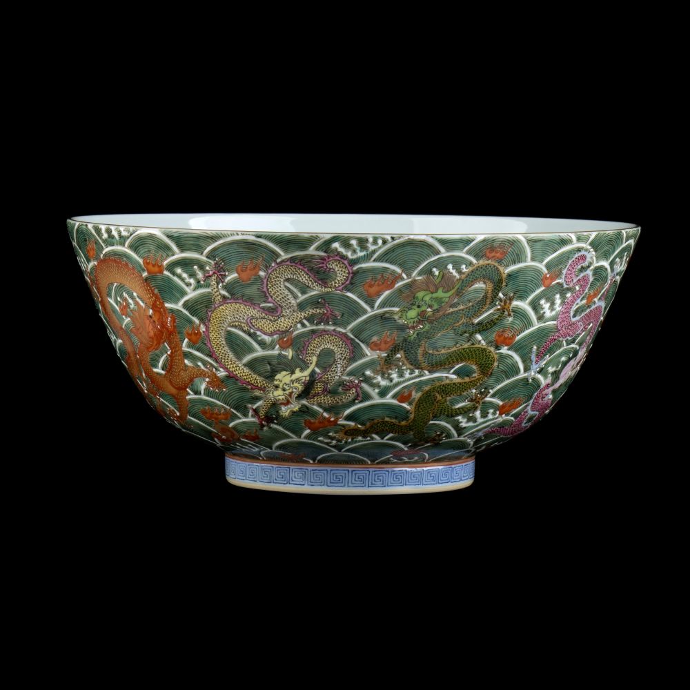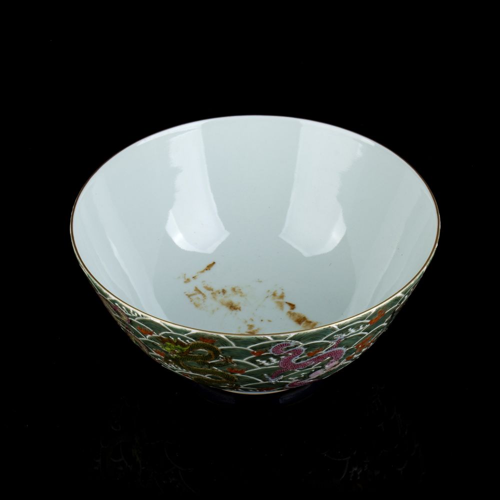 Lotto 203 | CIOTOLA IN PORCELLANA CON DECORO DI DRAGHI A SMALTI POLICROMI
