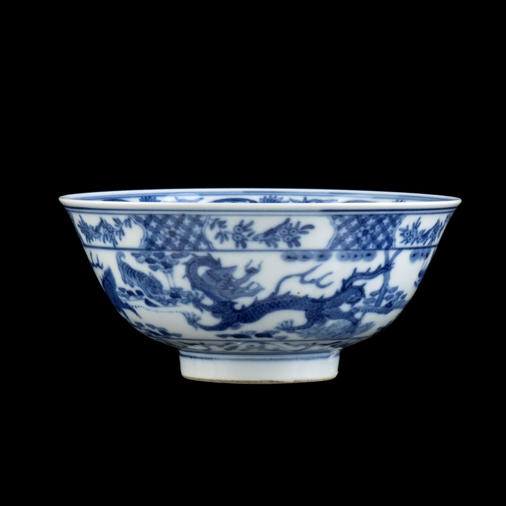 Lotto 212 | CIOTOLA IN PORCELLANA 'BIANCO E BLU' CON DECORO DI DRAGHI