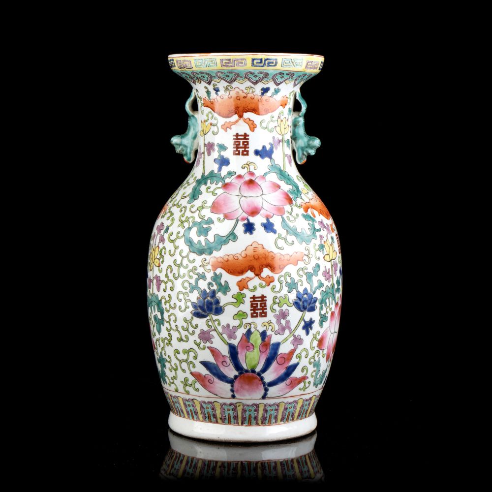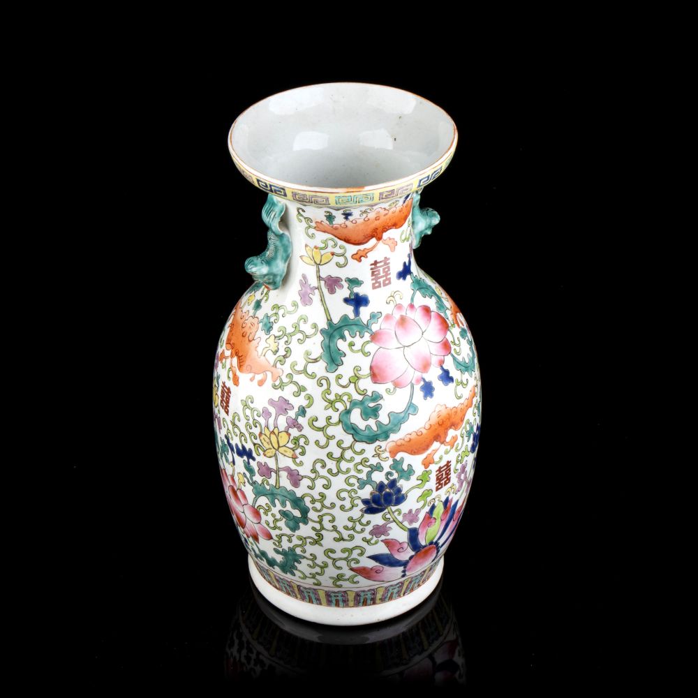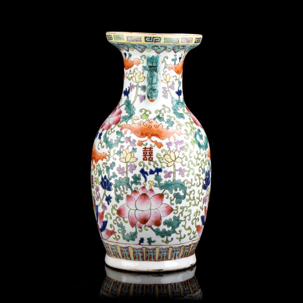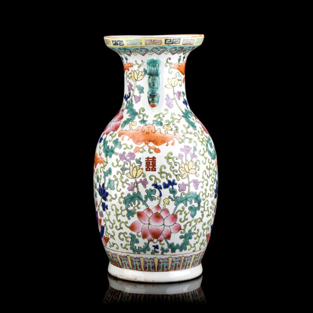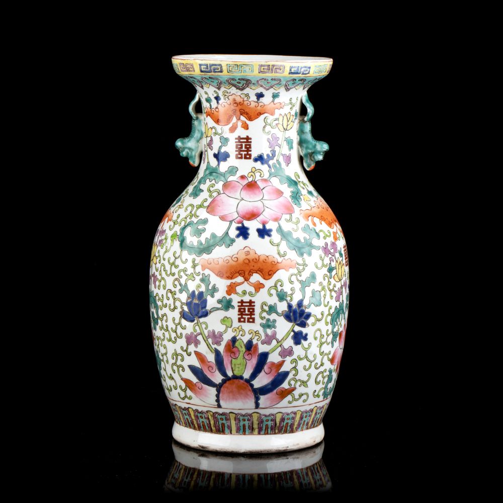 VASO A BALAUSTRO IN PORCELLANA CON DECORO A SMALTI POLICROMI