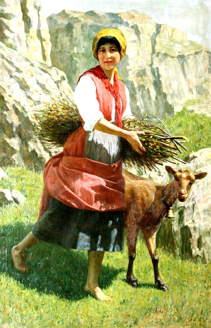 SERRA ERNESTO Varallo Sesia (VC) 1860 - 1915 "Pastorella con capra" 130x85...