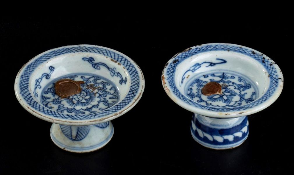 DUE PICCOLE ALZATE IN PORCELLANA 'BIANCO E BLU'