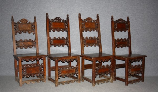 Lotto 578 | Firmato, datato. Quattro sedie a cartella in legno di noce. XVIII secolo....