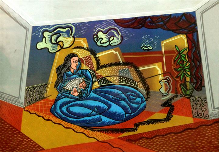 ORIANI PIPPO Torino 1909 - 1972 Roma "Dama con ventaglio" 50x70 olio su tela...