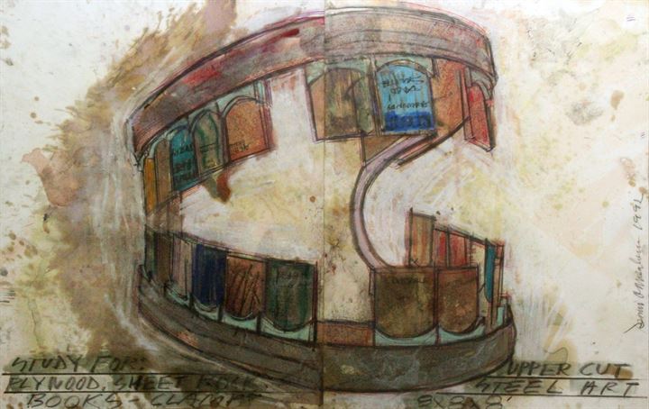 "Study for: upper cut plywood, sheet rock steell art books" 1992