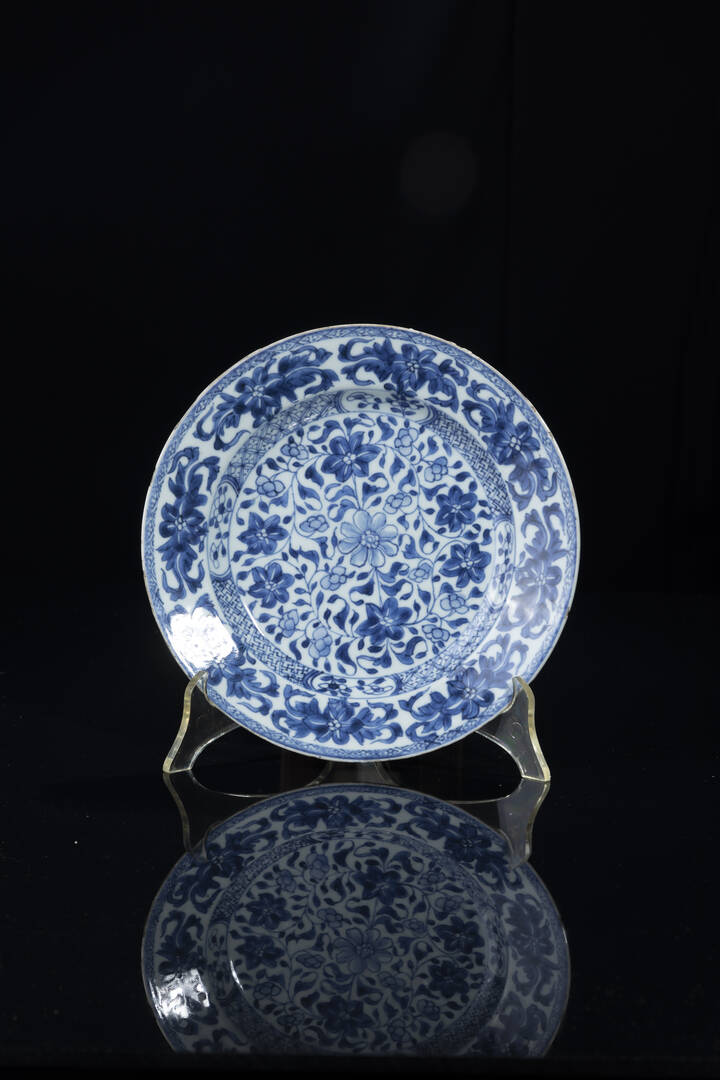 Piatto in porcellana bianco e blu, Cina, dinastia Qing, epoca Kangxi (1662-1722)
