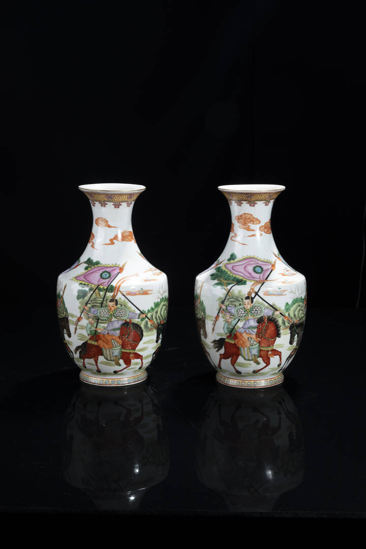 Coppia di vasi in porcellana con decori di battaglia, Cina, Repubblica, XX sec