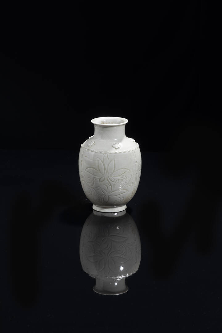 Vaso in porcellana con decori floreali su fondo bianco, Cina, dinastia Qing, XIX sec