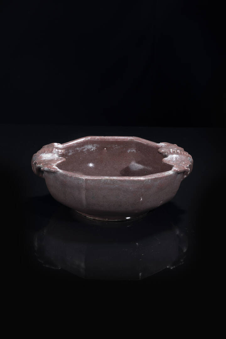 Ciotola in porcellana di color aubergine con manici a forma di pipistrello, Cina, dinastia Qing, XIX sec