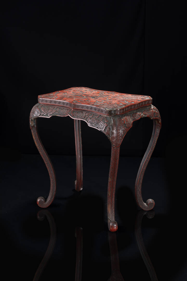 Tavolino in lacca decorato con fiori e farfalle, Cina, dinastia Qing, XIX sec