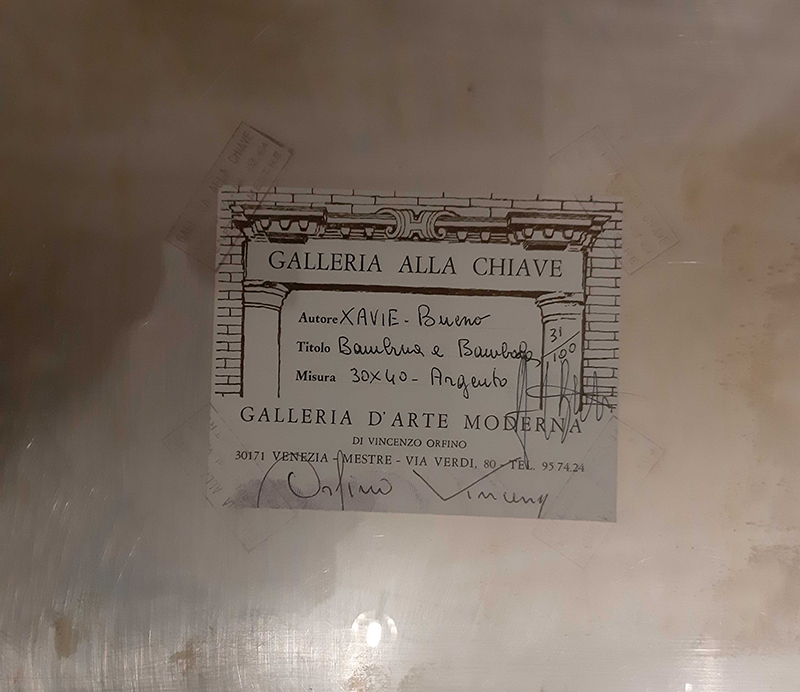 Certificazione: Etichetta al retro Galleria alla Chiave di Mestre