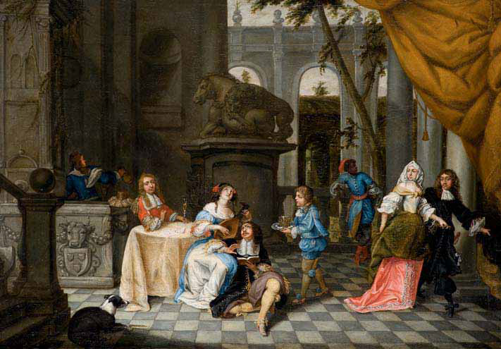 Jan Baptist Monteyne 1695 – 1722 SCENA GALANTE olio su tela, cm 58x82 L’opera è accompagnata da una comunicazione scritta della Dott.ssa Ursula Härting datata 25/01/2003. Per l’opera è stato richiesto l’Attestato di Libera Circolazione.