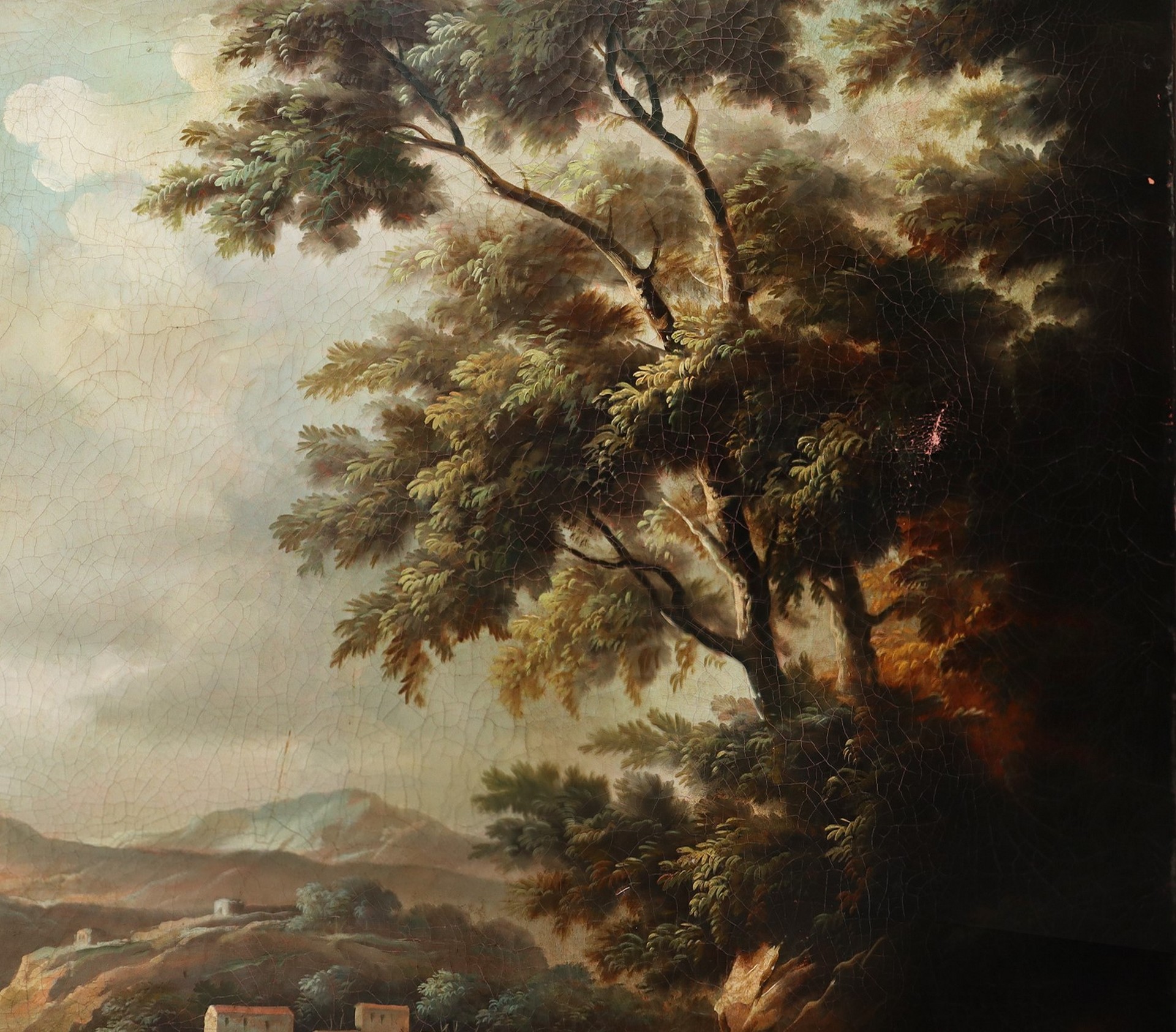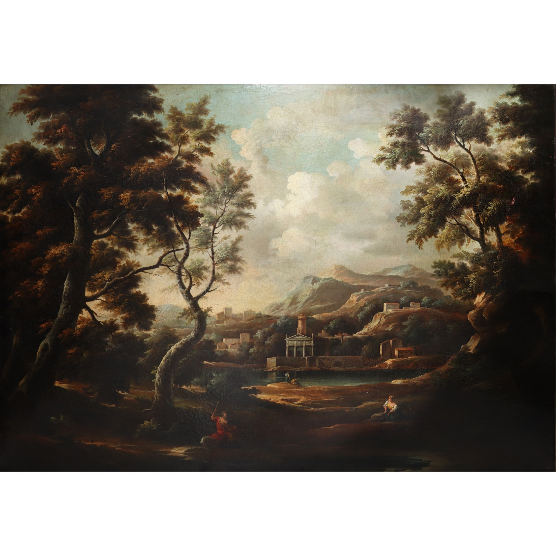 Pittore fiammingo italianizzante - Paesaggio con personaggi e tempio sullo sfondo H cm 150x200 - in cornice H cm 168x217