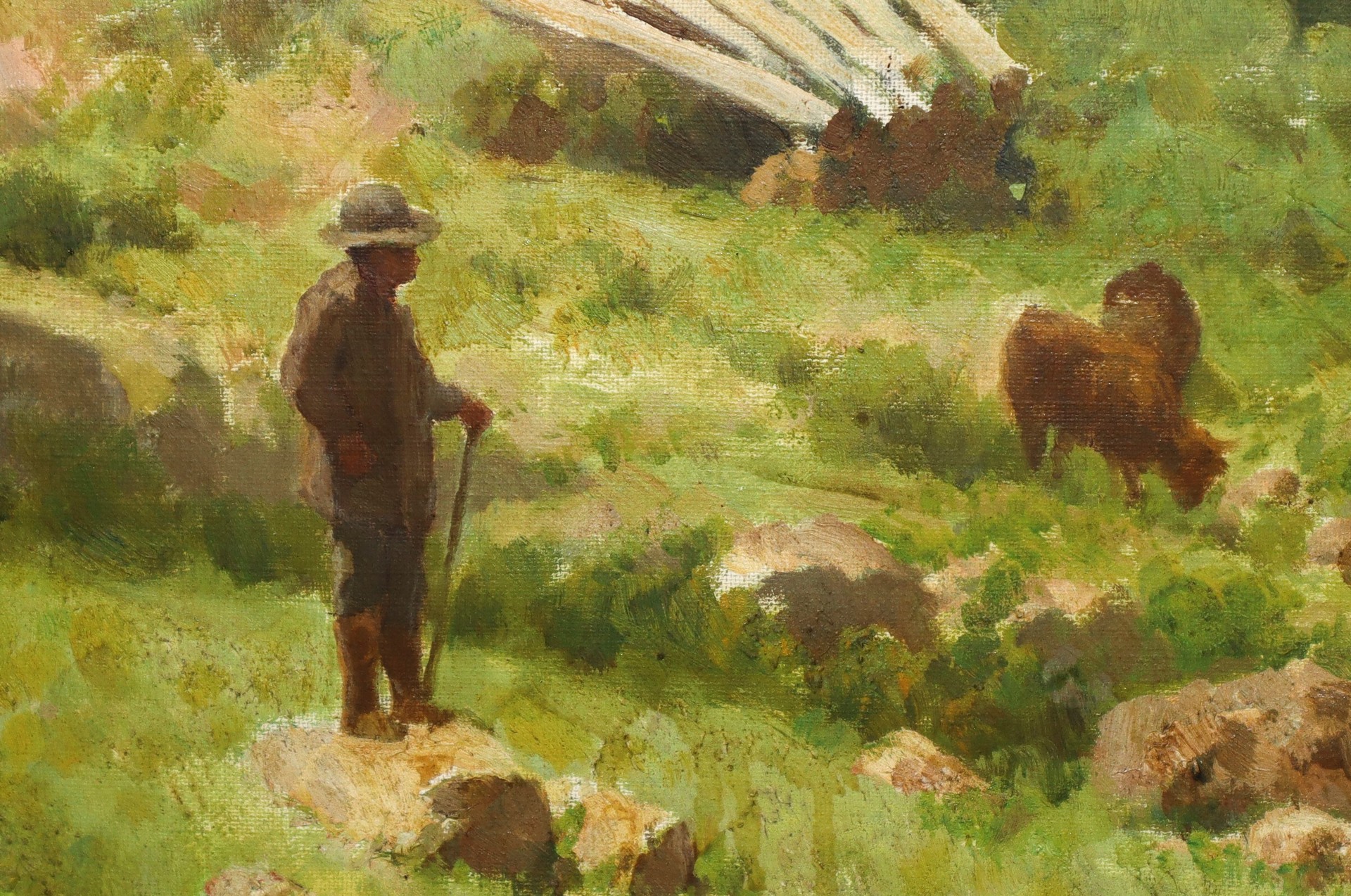 Francesco Lojacono (Palermo 1838-Palermo 1915) - Paesaggio campestre con alberi e armenti lungo una strada delle Madonie