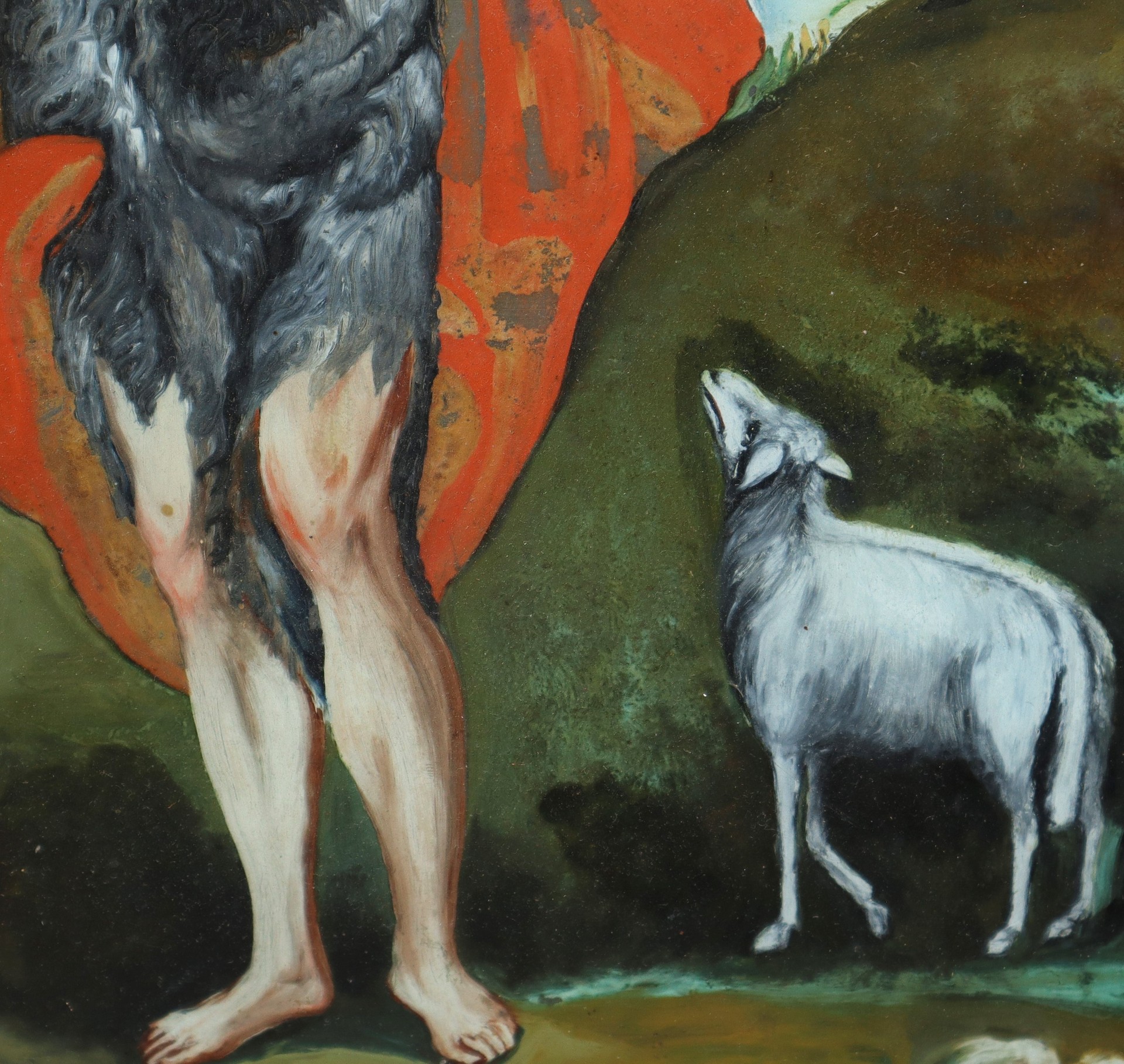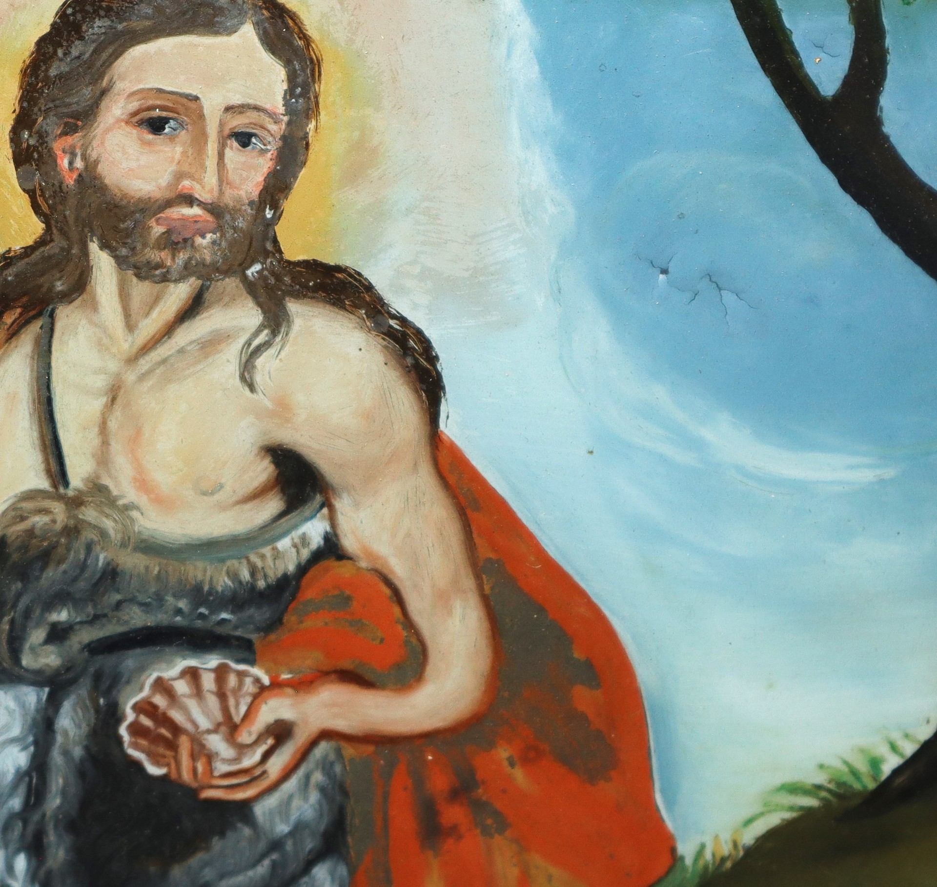 San Giovanni Battista, nineteen° secolo H cm 37x29 - in cornice 42x33 pittura su vetro