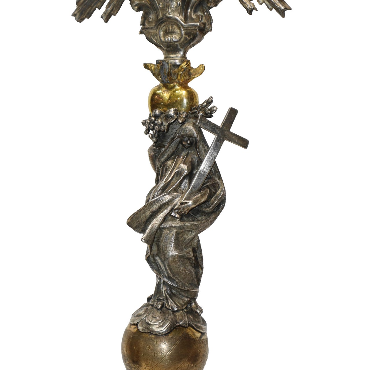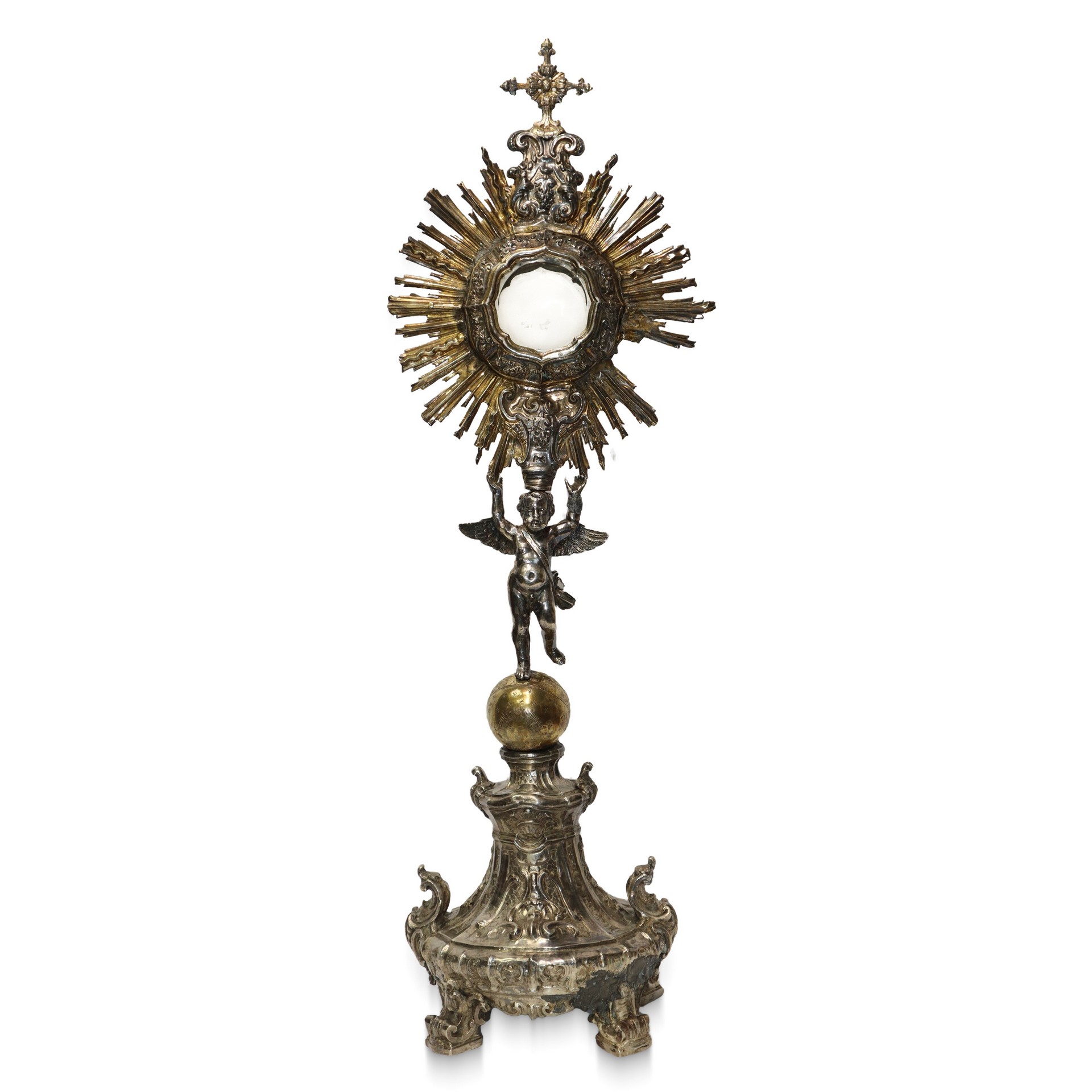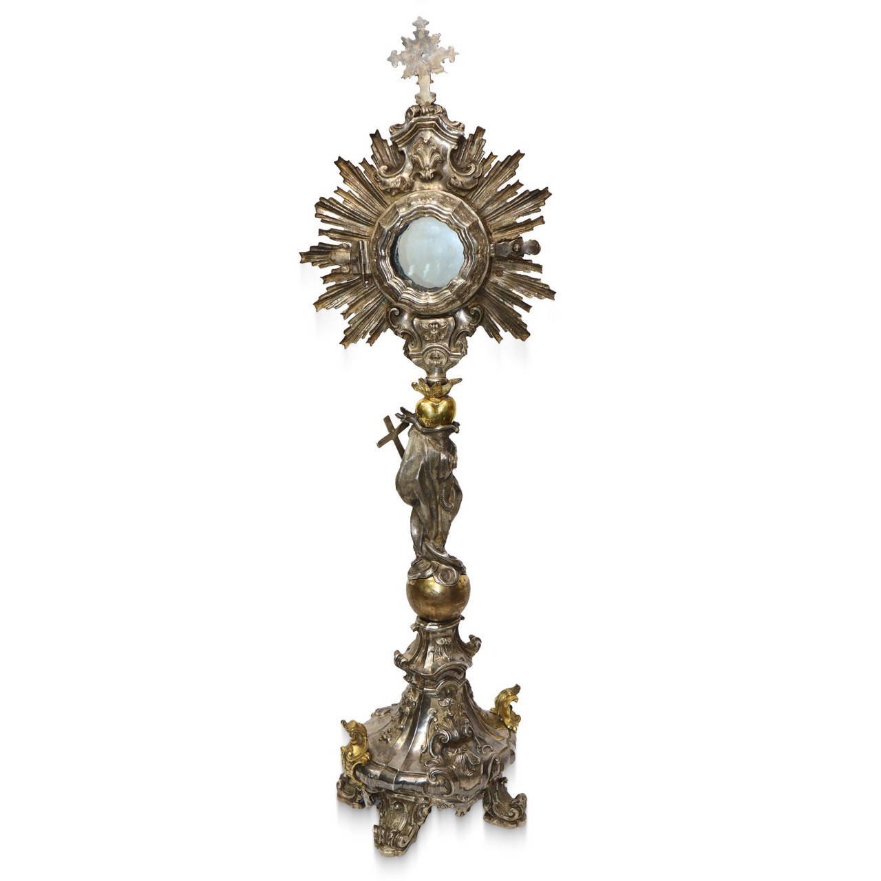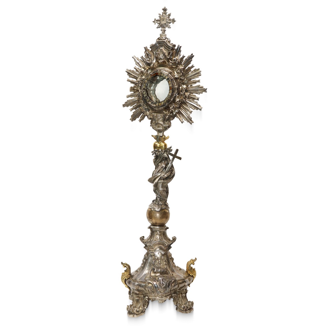 Ostensorio in argento e argento vermeil con Allegoria della Fede di sostegno, 18° secolo