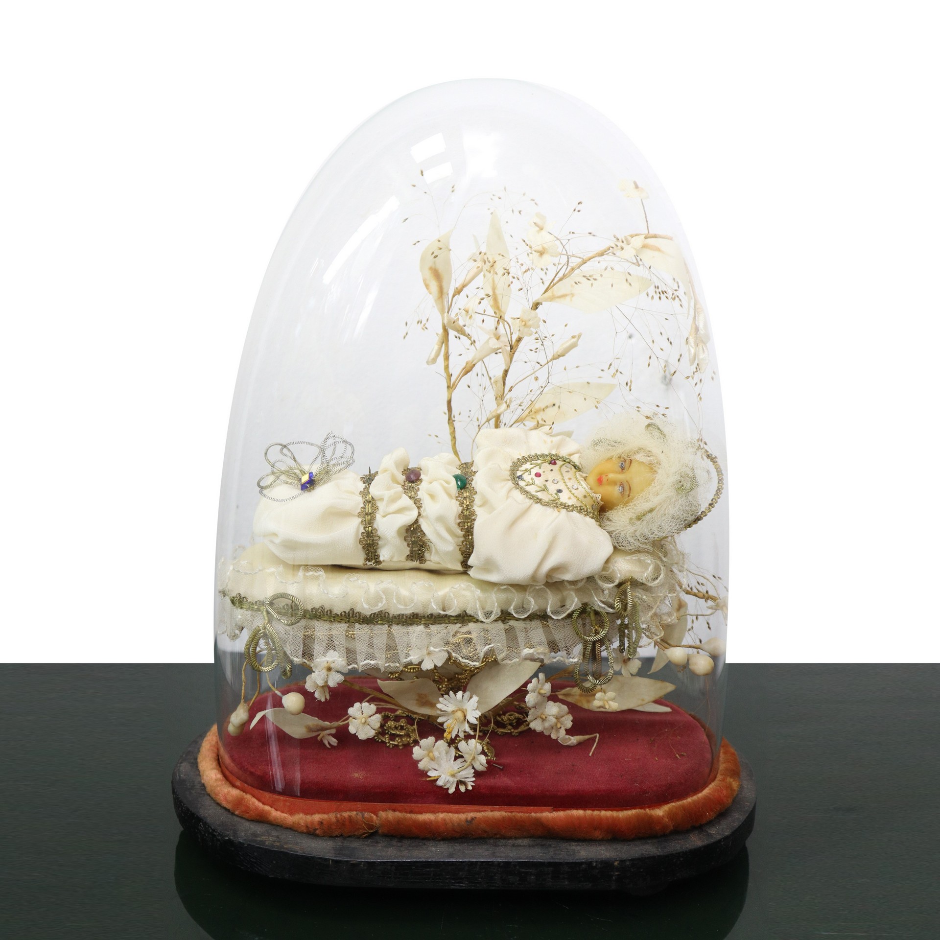 Madonna bambina in ceroplastica in teca di vetro, nineteen° secolo
