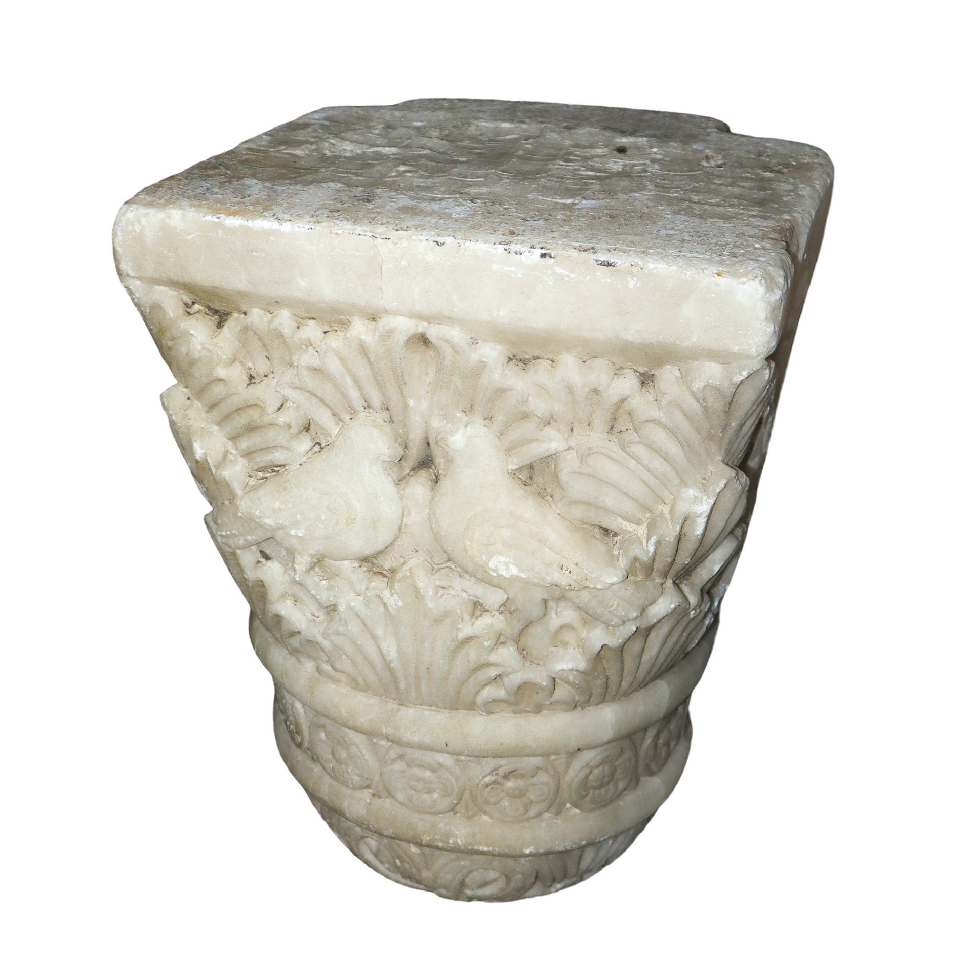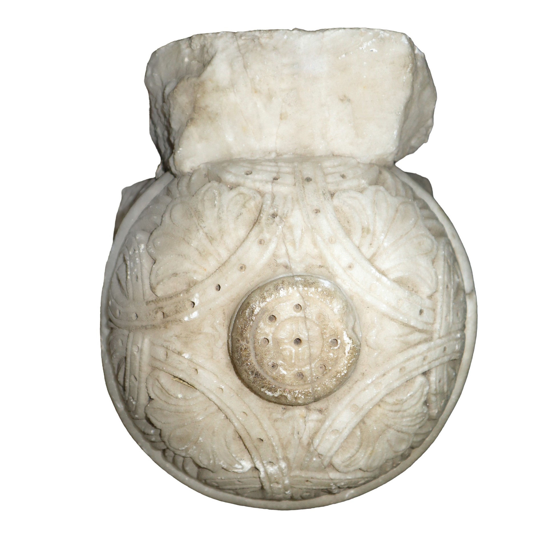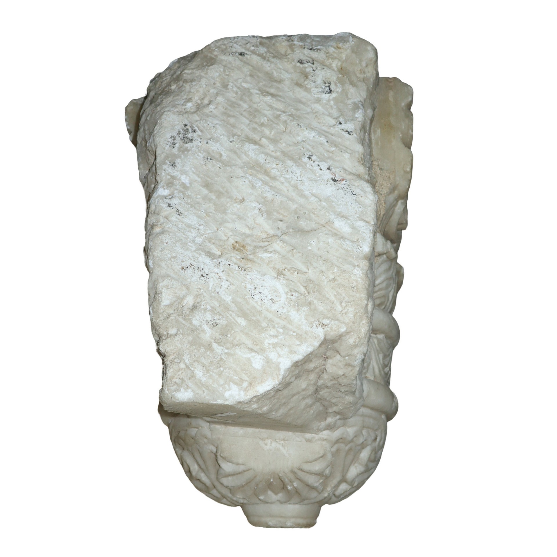 Coppia di mensole da incasso in marmo bianco scolpiti con foglie d'acanto e stilemi floreali, 14th/15° secolo