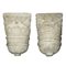 Coppia di mensole da incasso in marmo bianco scolpiti con foglie d'acanto e stilemi floreali, 14th/15° secolo H cm 52x33x34