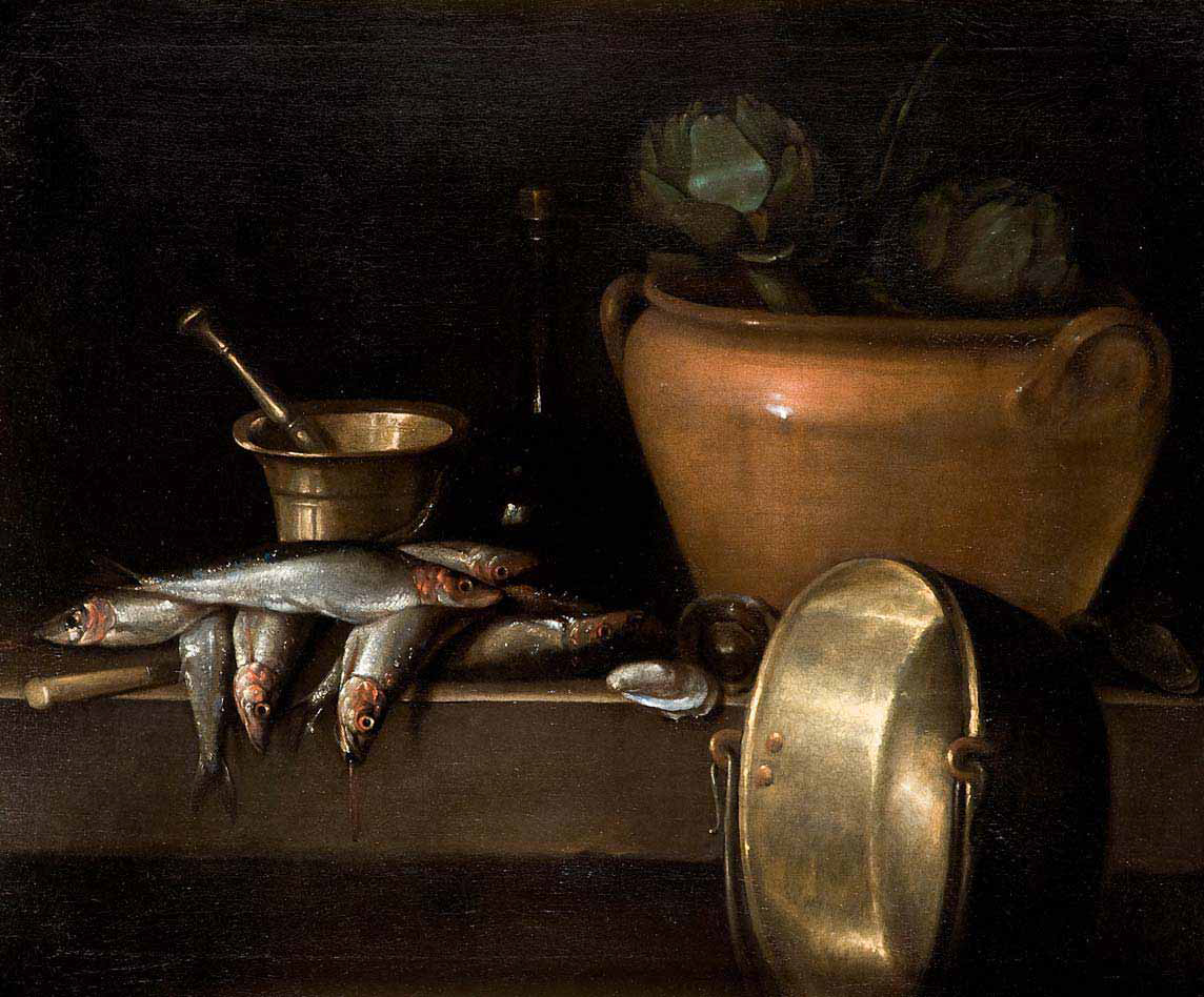 Giuseppe Recco Napoli 1634 – 1696 NATURA MORTA CON PESCI olio su tela, cm 63x76,5. L’opera presentata costituisce una testimonianza della fase pittorica di Giuseppe Recco tra la seconda metà degli anni Cinquanta e l’inizio degli anni Sessanta. In tale frangente infatti si assiste ancora ad una resa naturalistica degli elementi raffigurati, in anticipo rispetto agli sviluppi barocchi ravvisabili in opere successive. L’attenzione del pittore si concentra pertanto sugli effetti di luce degli elementi raffigurati e sul ritmo della composizione – impaginata su ipotetiche traiettorie rettilinee su cui sono disposti gli oggetti – volto ad ottenere un’atmosfera silenziosa e rarefatta. Opere confrontabili con quella presentata possono essere la Natura morta con pesci e frutti di mare custodita presso il Museo Nazionale di Belle Arti di Malta, ovvero la Natura morta con pesci, catino di rame e anfora della Collezione Molinari Pradelli, risalente al decennio 1655- 1665 (cfr. C. Volpe, La Raccolta Molinari Pradelli. Dipinti del Sei e Settecento, Centro Di, Firenze 1984, p. 21, Cat. 13b).