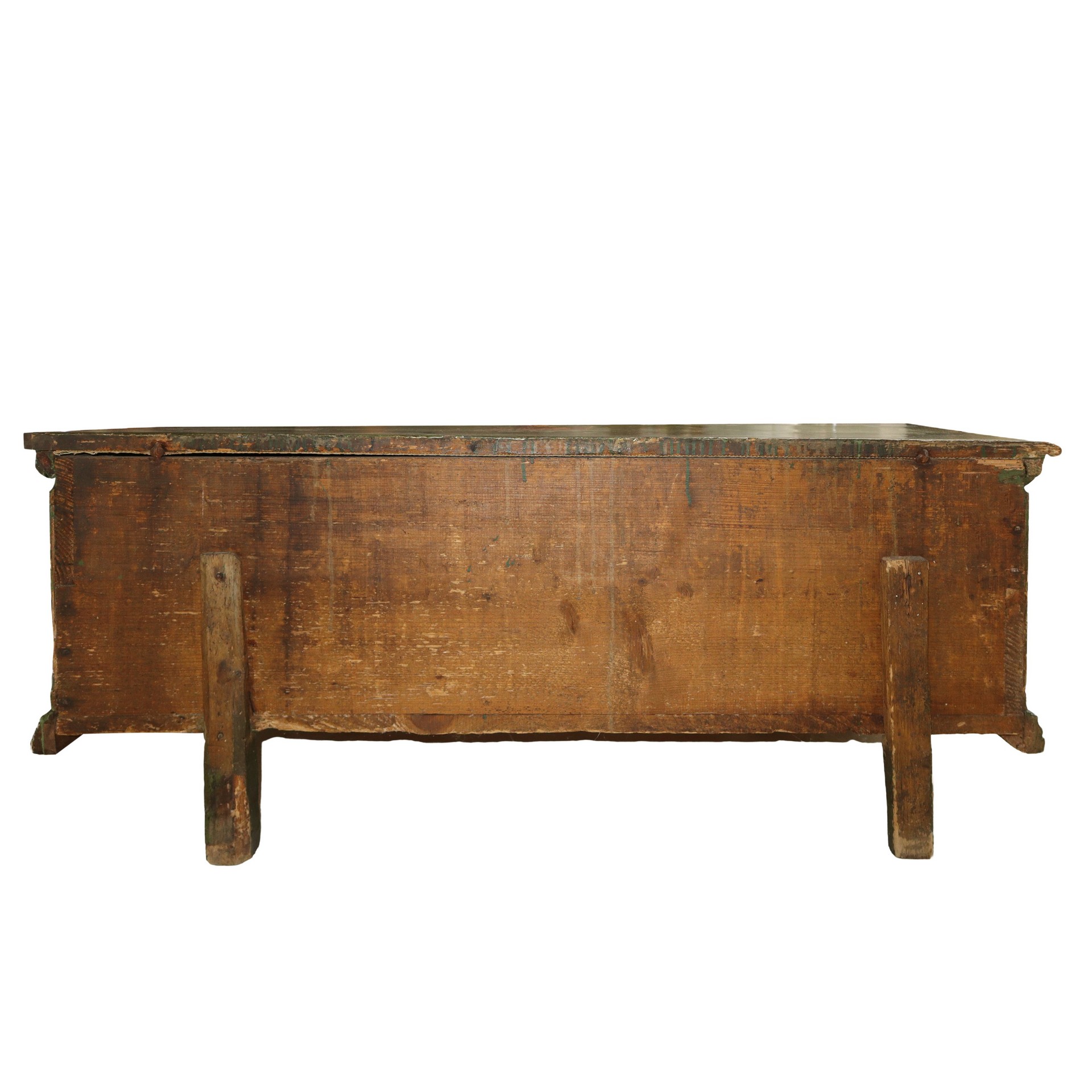 Cassapanca laccata e dipinta nei toni del verde, nineteen° secolo