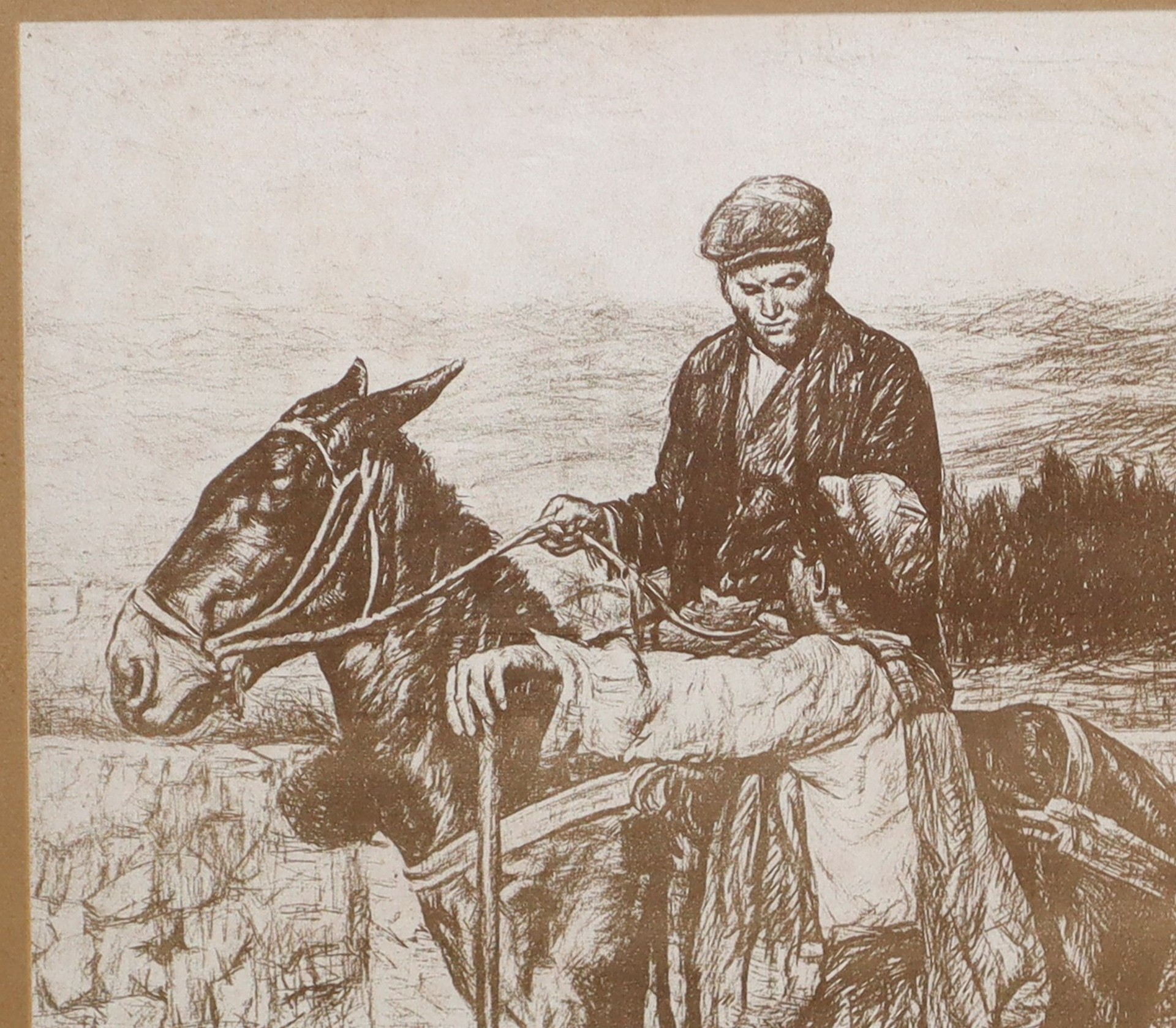 Roberto Rimini (Palermo 1888-1971) - Uomo su asino Cm 40x30, in cornice cm 68x58 litografia Firmato a matita in basso a sinistra