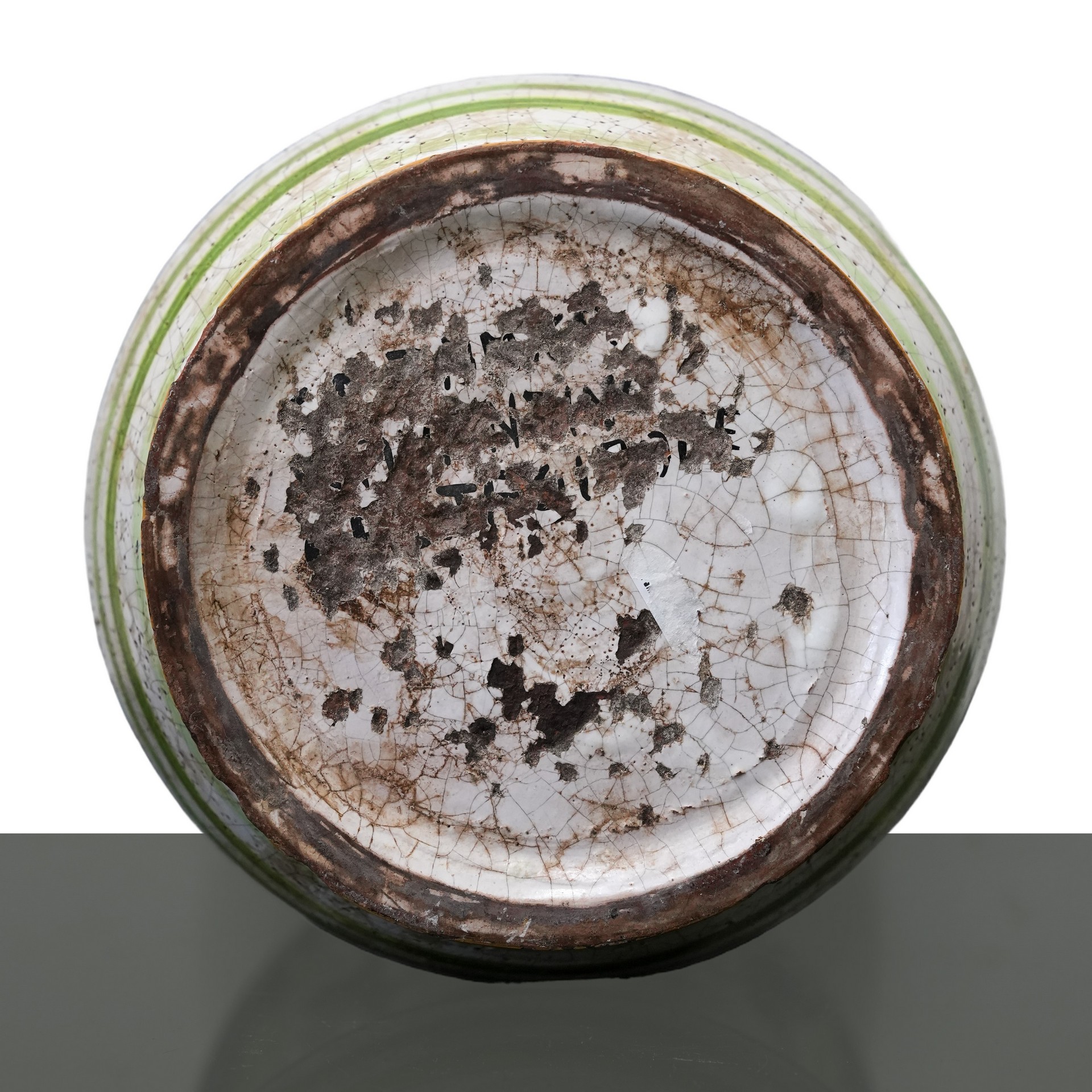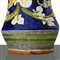 Vaso a cilindro in maiolica di Caltagirone, sfondo blu con decori floreali bianchi, gialli e verdi, primi 20° secolo H cm 37,5x20 Scritta illeggibile alla base. Smalto sbeccato o assente in alcuni punti.Scritta illeggibile alla base. Smalto sbeccato o assente in alcuni punti.