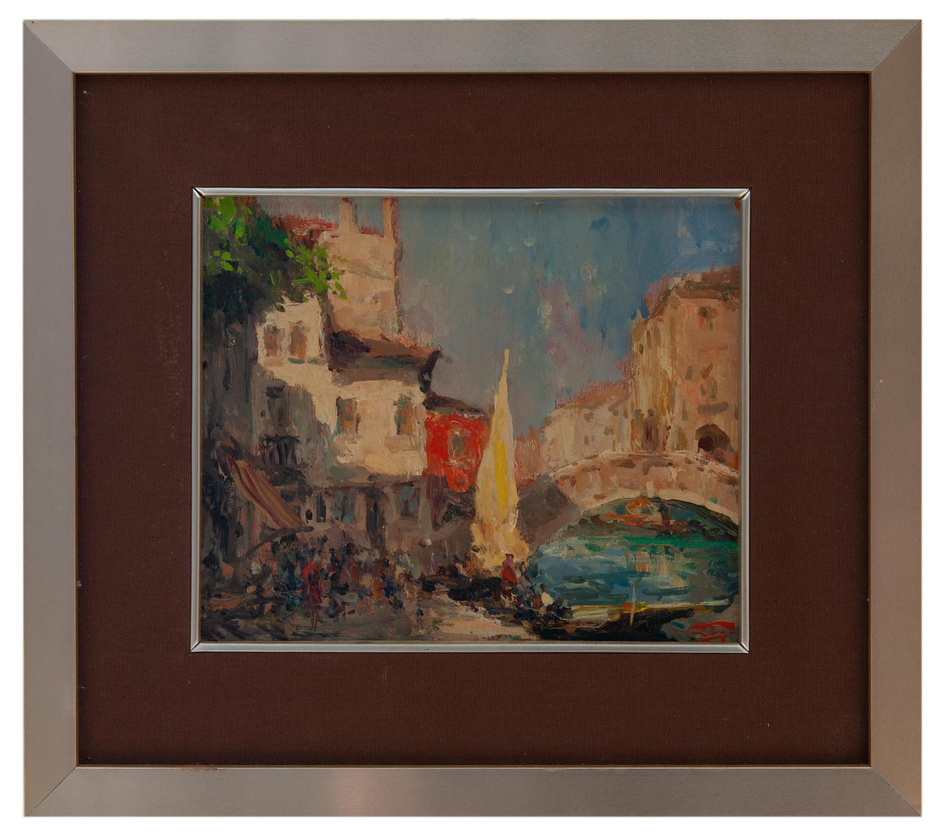 Luigi Pagan Chioggia 1907-1990 Veduta di Chioggia Olio su tavola cm 18,5x22,5