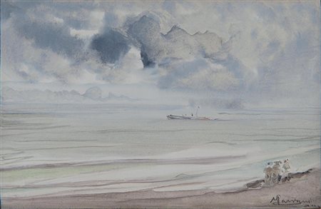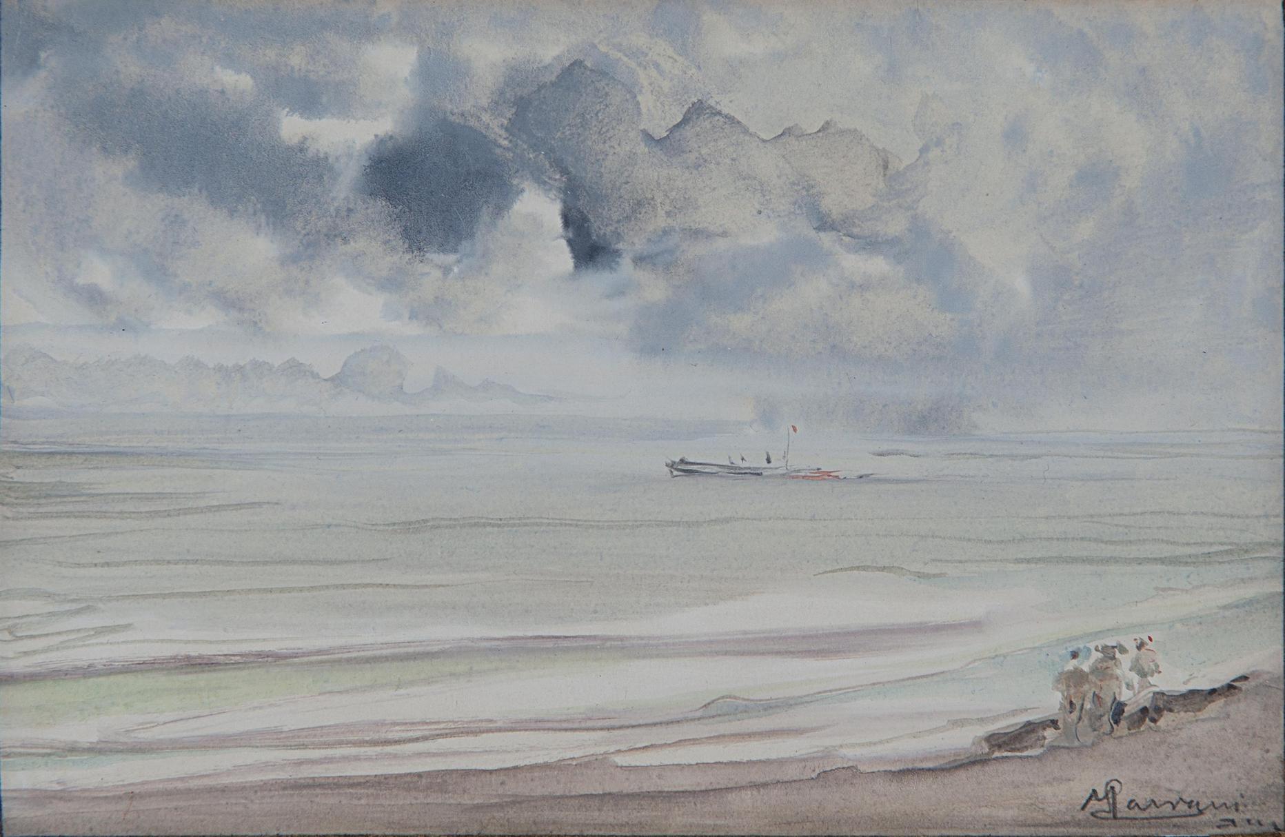 Pompeo Mariani Monza 1857 - Bordighera IM 1927 L'attesa sulla spiaggia