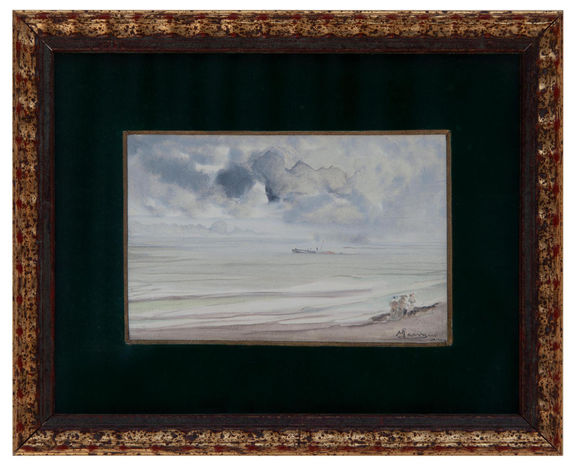 Pompeo Mariani Monza 1857 - Bordighera IM 1927 L'attesa sulla spiaggia Tecnica mista su cartone cm 9x14,5
