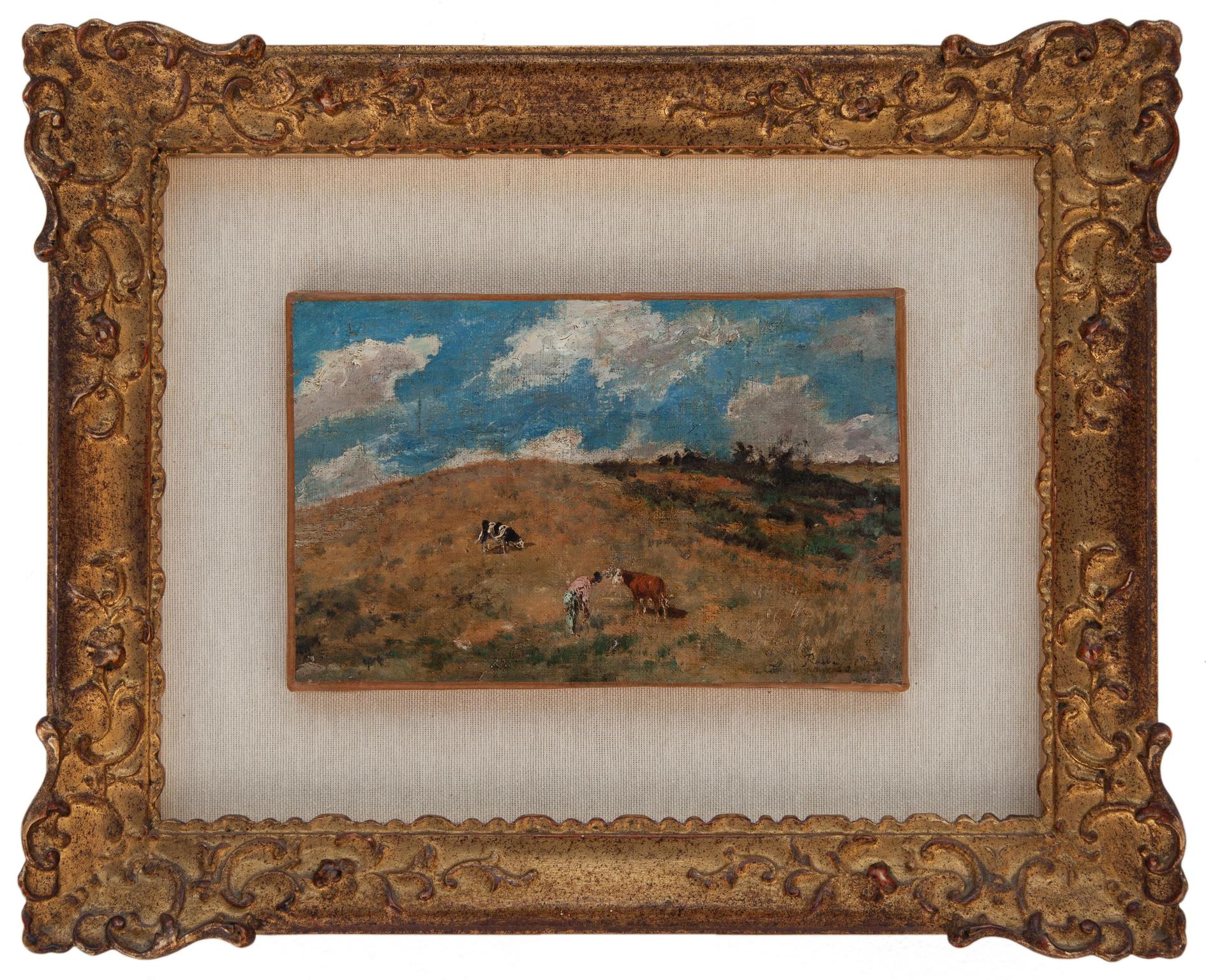 Luois Marie Dominique Robbe Kortrijk 1806-1887 Brussels Pascolo Olio su tela cm 14x22
