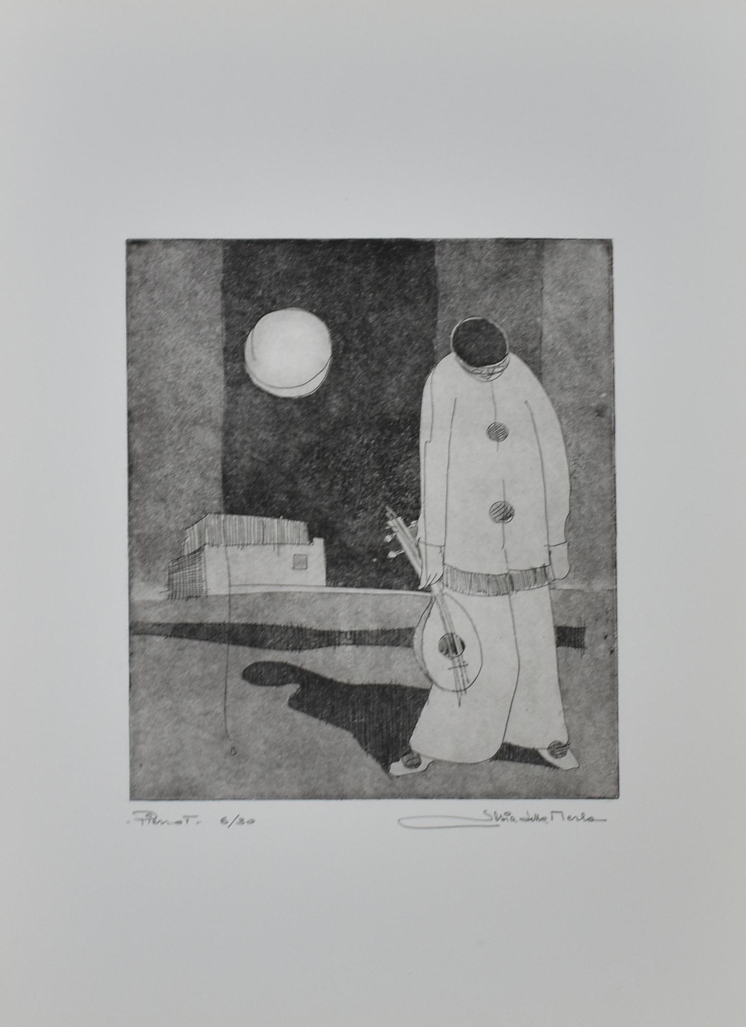 Gianni Sesia della Merla PIERROT incisione su carta, battuta cm 27x21; su...