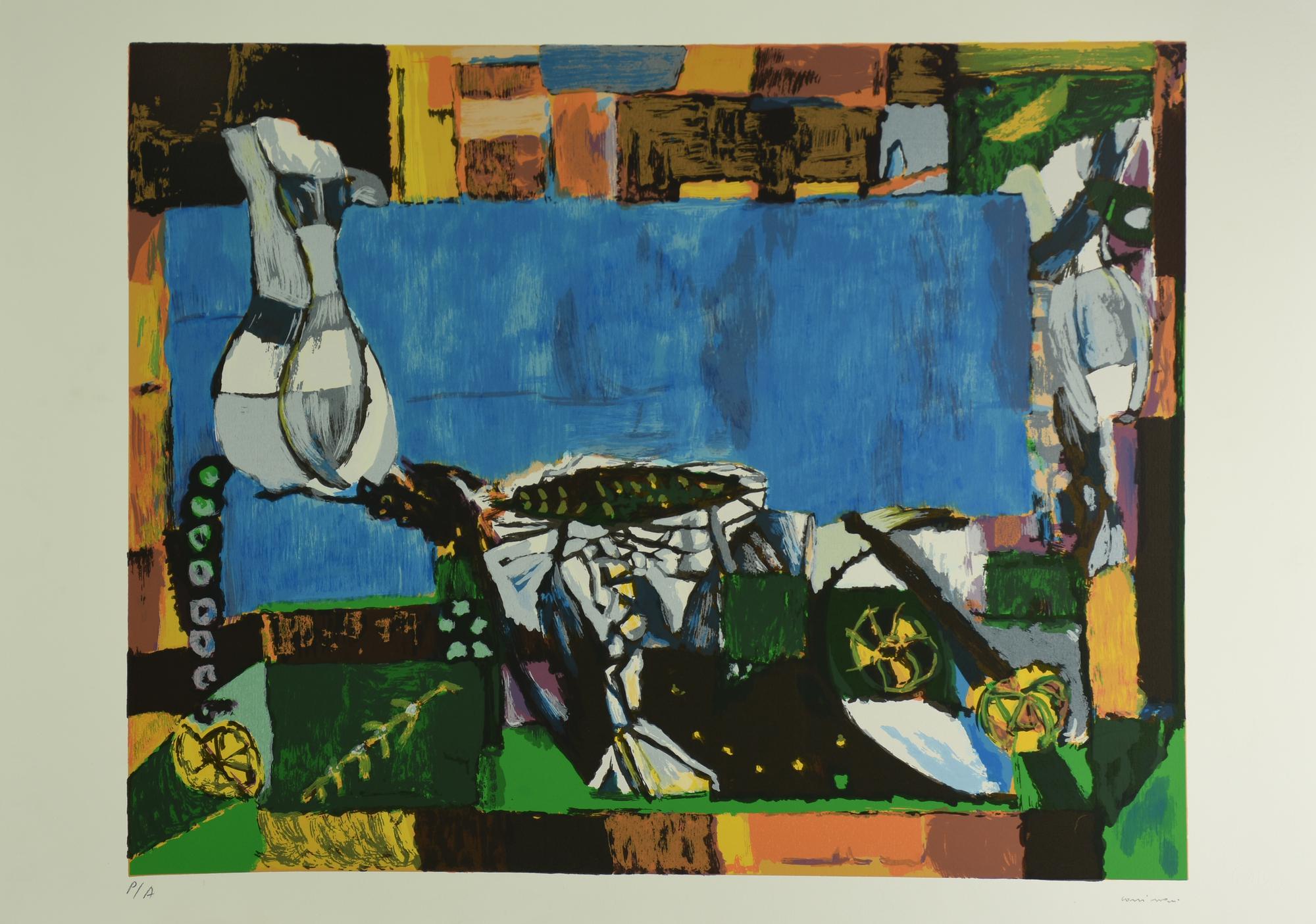Bruno Cassinari NATURA MORTA serigrafia su carta Fabriano, cm 50x70; es. P.A....
