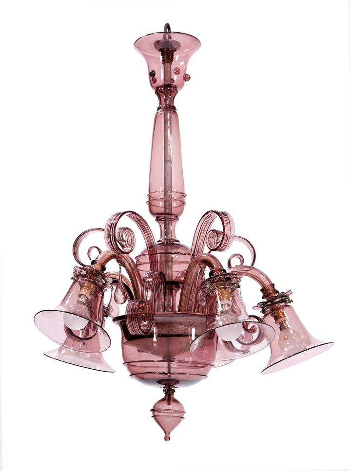 VENINI Lampada a sospensione in vetro di Murano color viola e montatura in...