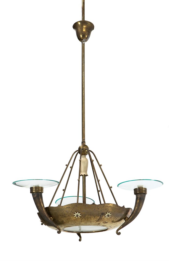 BUZZI TOMASO (nello stile di) Lampada a sospensione con struttura in ottone e...