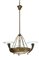 Lampada a sospensione con struttura in ottone e coppe in vetro trasparente.