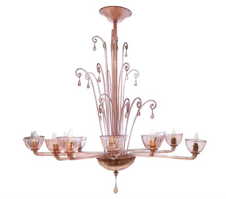 MVM CAPPELLIN & C. Grande lampada a sospensione in vetro soffiato viola e...