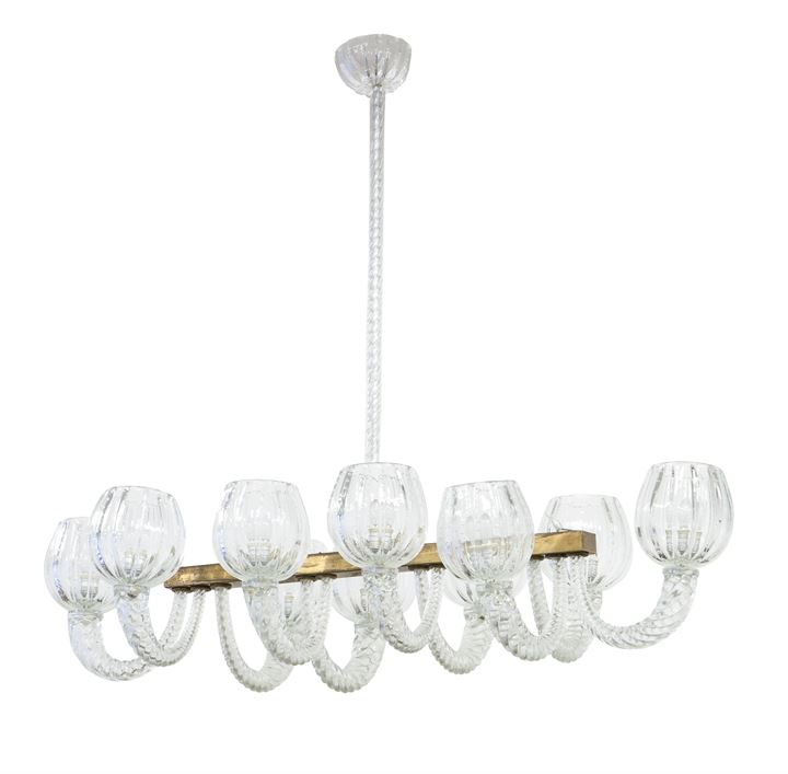 BAROVIER & TOSO Lampada a sospensione con struttura in ottone, bracci in...