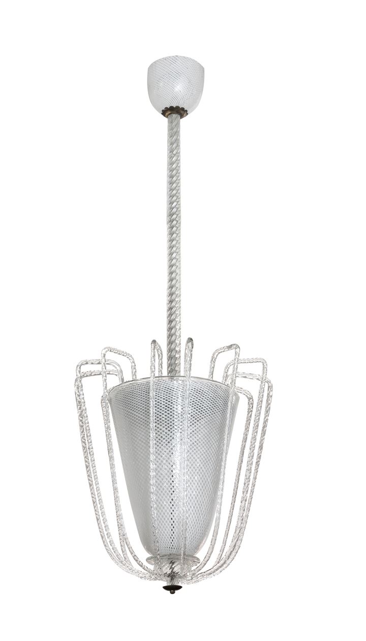 BAROVIER & TOSO Lampada a sospensione con coppa in vetro a reticello, stelo...