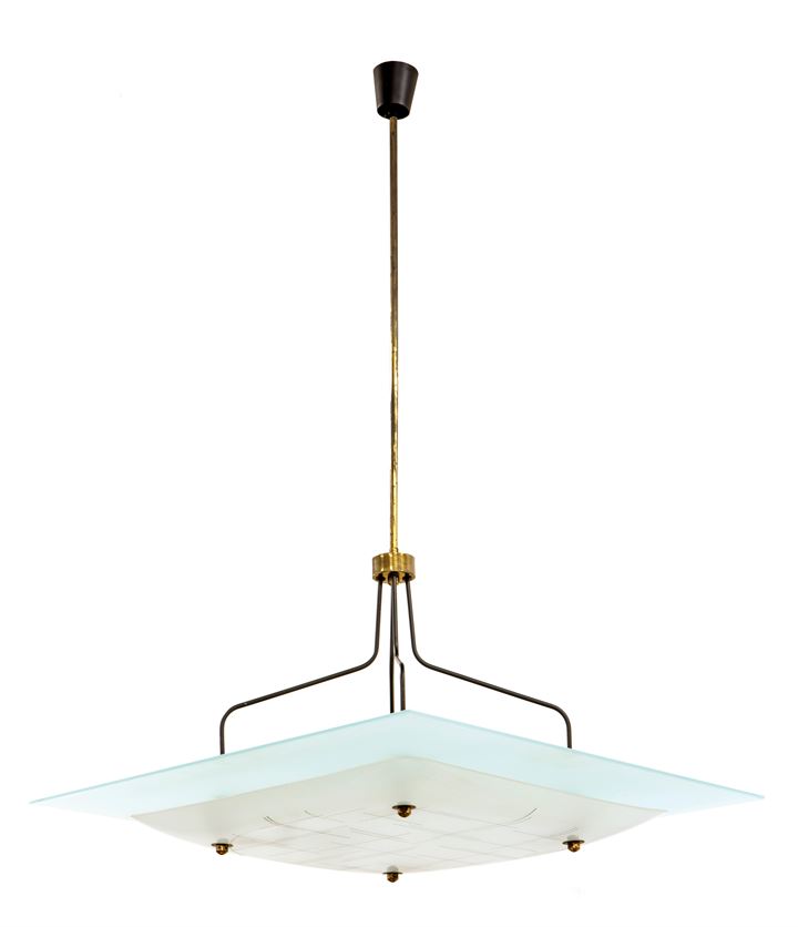 PRODUZIONE ITALIANA Lampada a sospensione i metallo laccato, ottone e vetro...