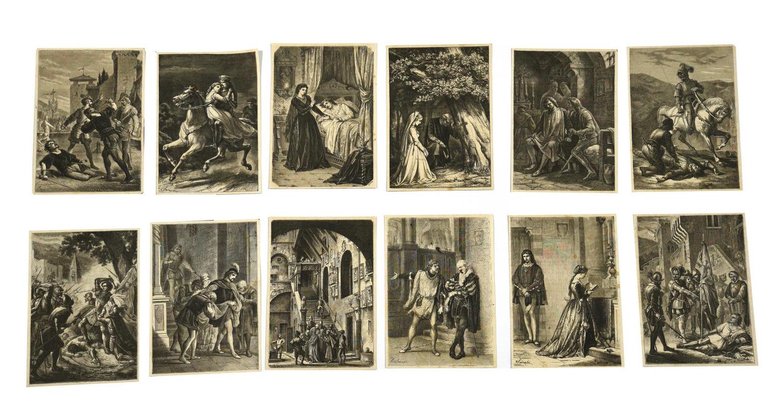 LOTTO DI DODICI ILLUSTRAZIONI TIPOGRAFICHE