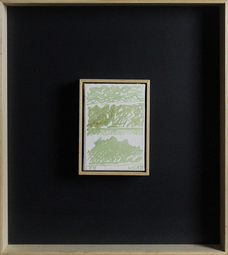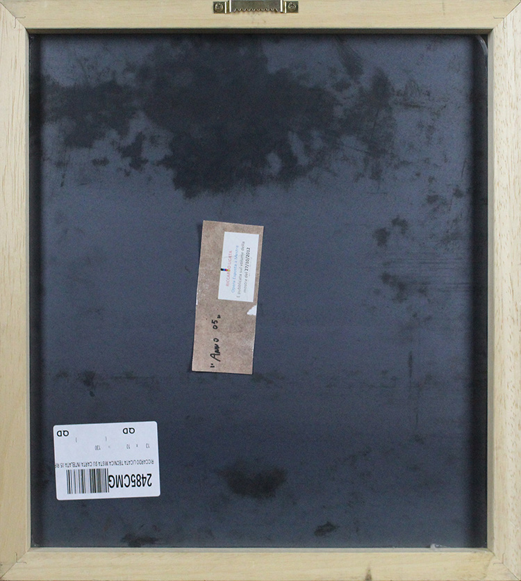 RICCARDO LICATA, Senza titolo, 2005, Tecnica mista su cartoncino intelato, Dim. 13x10. Opera accompagnata da autentica dell'artista su foto in data 12/02/2008 e pubblicata sul volume della mostra di Mestre del 27 ottobre 2012, Al fronte: firmata in basso a destra. Opera con cornice.