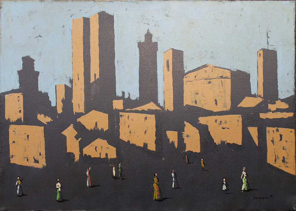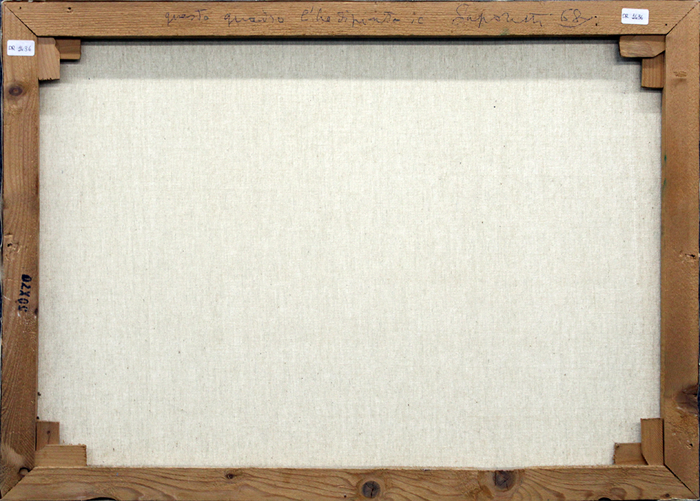 ADOLFO SAPORETTI, 1968, olio su tela, dim 70x50. Al fronte: firma in basso a destra. Al verso: in alto dichiarazione di autenticità da parte dell'artista, firma e anno.