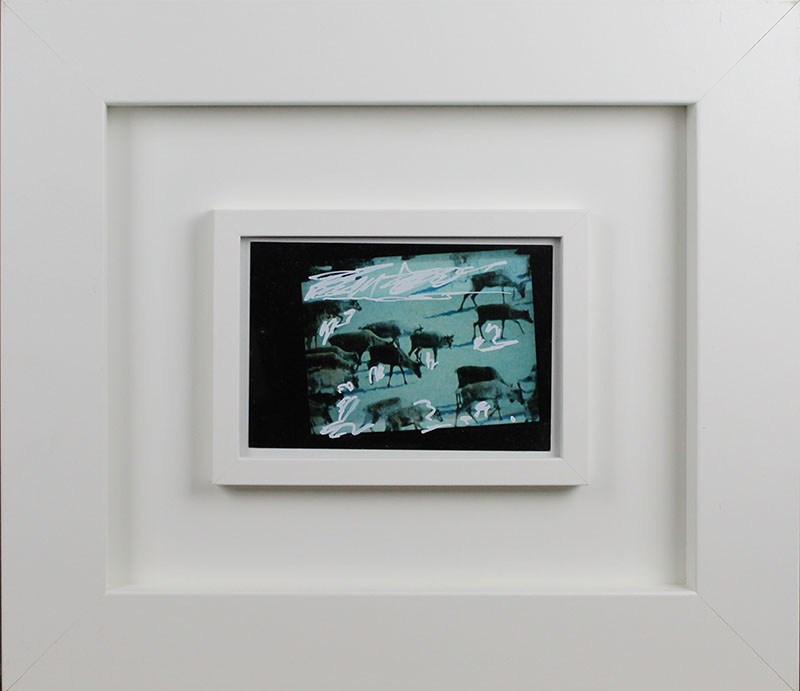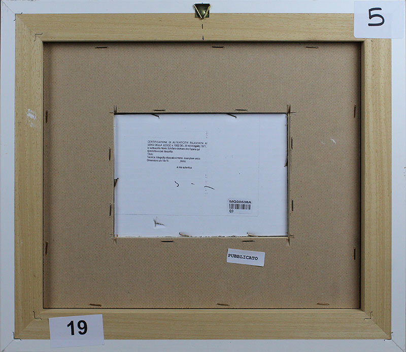 MARIO SCHIFANO, In cammino, 1990-97, Foto ritoccata a smalto, Esemplare unico, Dim. 10x15, Opera archiviata presso la Fondazione Mario Schifano " Archivio Generale dell' Opere di Mario Schifano " con n° archivio: F90-97/6486, il 19 settembre 2007, Opera pubblicata sul catalogo " Mario Schifano fotografie ritoccate " a pag.37, volume I, Al verso: firma "Schifano", Opera con cornice