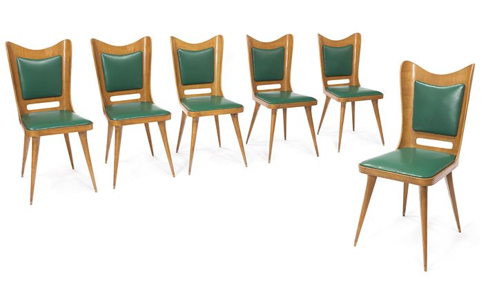 ASNAGO MARIO (attribuito) Sei sedie in acero bianco con seduta imbottita in...