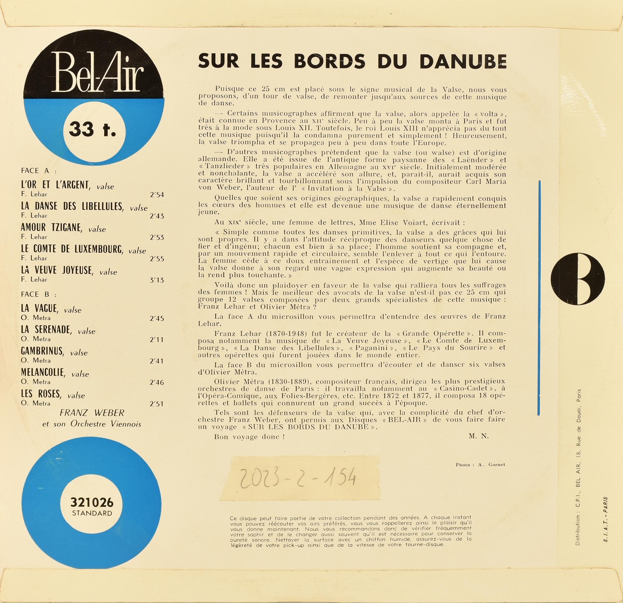 Precedente Lotto 96 Successivo Livebid - Via Tiziano Vecellio 34/D, 10126 Torino DISCHI VINTAGE E DA COLLEZIONE Sessione Unica mercoledì 17 gennaio 2024 ore 21:00 (UTC +01:00) LP 33 GIRI Sur les bords du Danube LP 33 GIRISur les bords du Danube